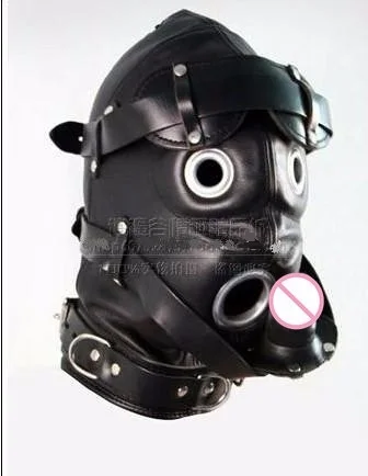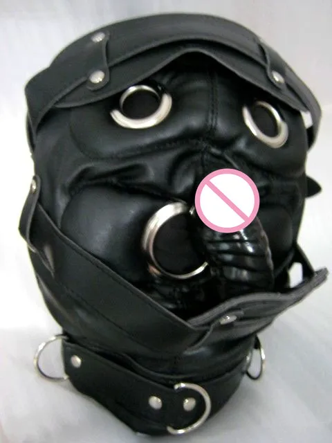 Affordable 2018 Nieuwe Zachte Lederen Bondage Kap Masker Afneembare Ooglap Silicone Dildo Mond Plug Hoofddekse