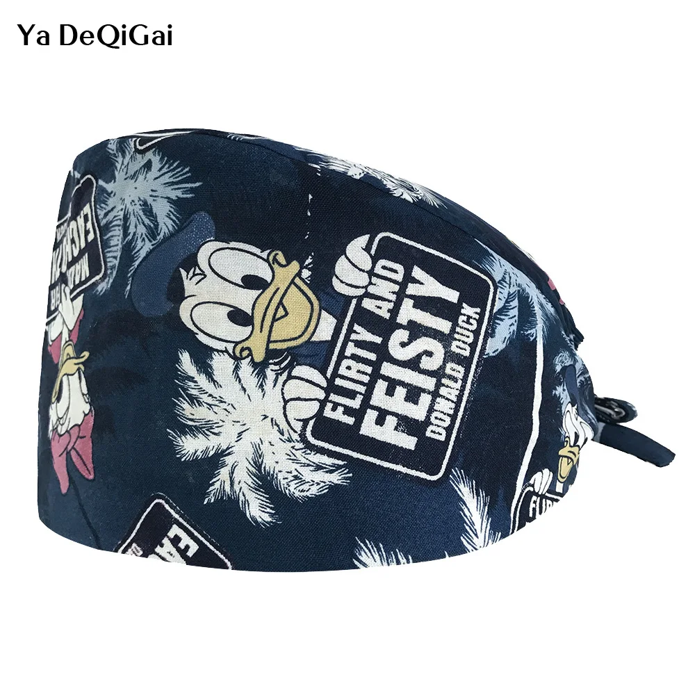 - high quality printing breathable pharmacy hat hospital nurse scrub cap Dentistry surgical caps adjustable Beauty salon hats mask